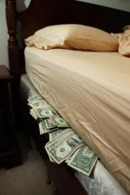 So, I take all of my money from the bank and put it in my mattress. I open carry my constitutional firearm with me wherever I go to protect myself and my money. That is, until I come home from the market one day to see my house is on fire, the house where I sleep on my big, fat, money mattress. I call out for help, but there's no fire department, and also the roads have turned to something worse than dirt, and there aren't any public works to fill the fire hydrants any more.